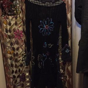 A unique sweater hits above knee great piece to add so much detail soft and cozy but stunning. Even nicer in person Pictures just don't do it justice! Tag says size one can fit size small.