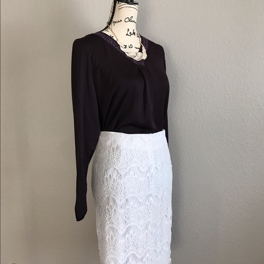 Excellent condition. Zip up in back. Lining has some stretch. Fringe at the bottom. I would love to keep this but I'm too clumsy for white ๐