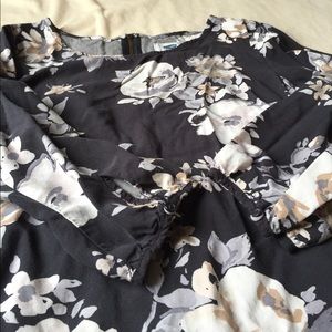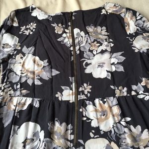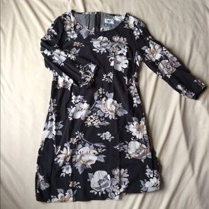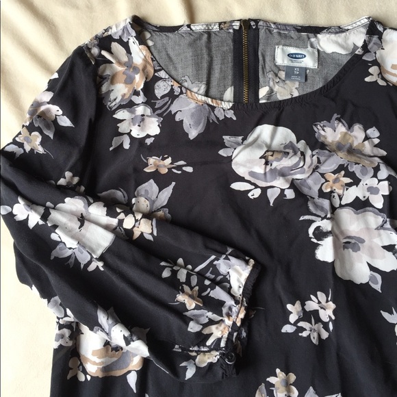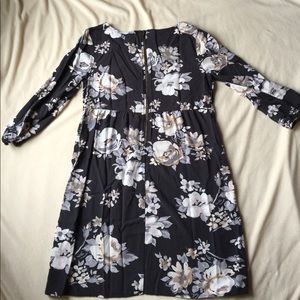 Lovely minidress from Old Navy (purchased online last August). Washed and worn twice-it's a little shorter than what I'd like still in EUC. Perfect with tights and flats/boots for fall or on its own for cooler summer evenings. Charcoal grey background with large chintz florals in white/creams. Rear zipper, elbow length sleeves. Great for work or casual events!👜