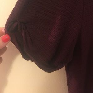 Causal Zara burgundy (boxy style) top with slits on the side. Worn a couple times, some pilling. Looks great with high waisted pants