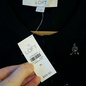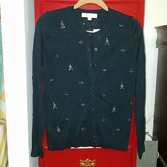 Never worn dark teal cardigan with gorgeous embellishments. By LOFT. Never worn. Perfect for the holidays!!