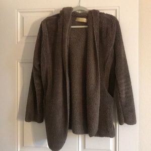 Worn maybe 3 times, realllly soft and can be worn with cute jeans and boots or for a night out with a cute high waisted skirt and thigh highs. Has pockets and hood