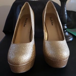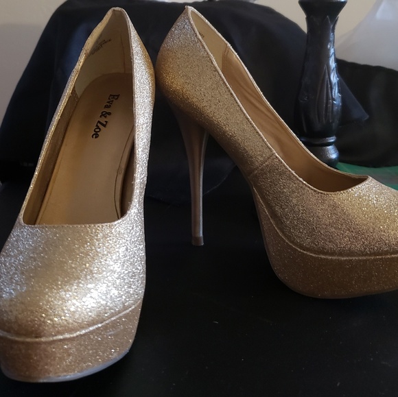 NWOT gold glittery heels size 7 Eva and Zoe approx. 6 inch heel