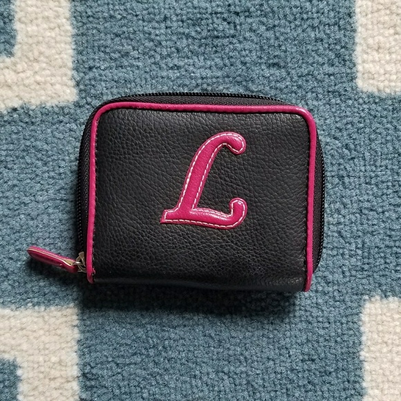 Beautiful black zip up wallet with the initial "L" on the front. Never used!