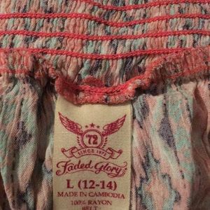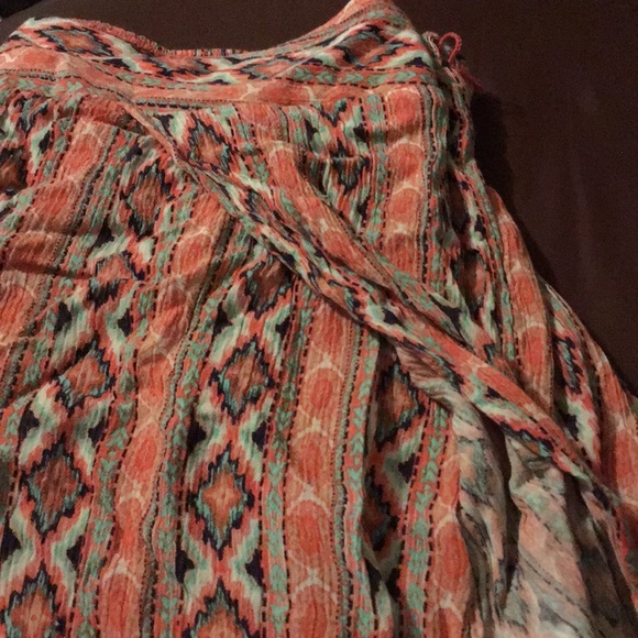 I love this skirt but have outgrown it. I wore it once to a baby shower, but that’s it. Size Large. It has high slits on both sides and stretchy waist.