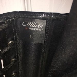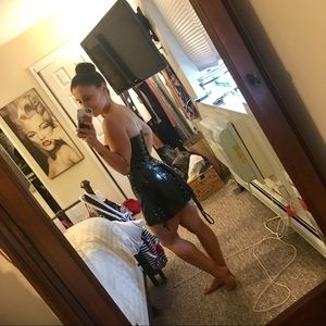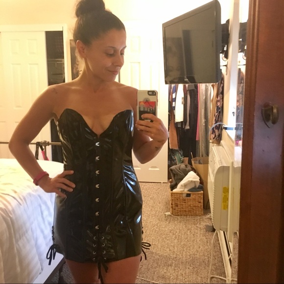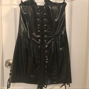 SEXYYYY black patent leather corset dress. Lace-Up back, hooks up the front, boning throughout. Worn once as a Halloween costume. So so sexy! Great condition 🖤✨ Price is firm ✨