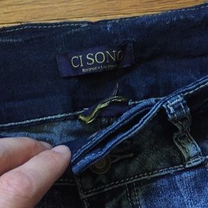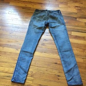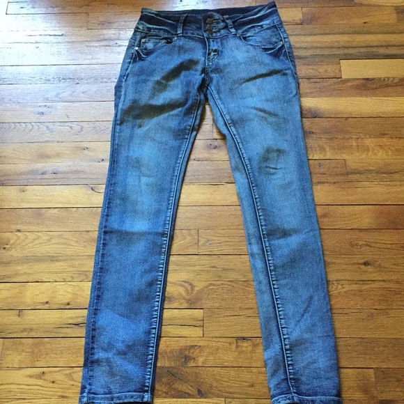 Skinny jeans Super Soft small stain (blends in, can probably be removed I just haven't tried) Great Butt Lift!! Mid Rise 9 inch Rise 13 inch waist across 30 inch inseam. Super Stretch!