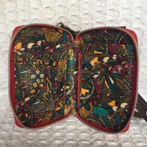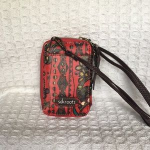 Super cute crossbody with pockets for phone, ID, cards and coin. Small amount yellow paint on removable crossbody strap as shown. Crossbody and wristlet straps are removable.