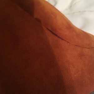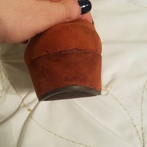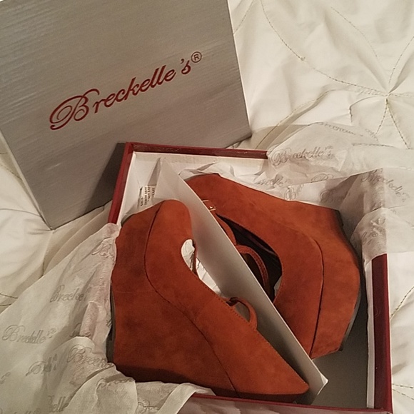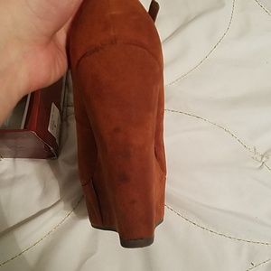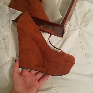 Brand new, never worn wedges. Rich cognac color. Some imperfections on right heel.