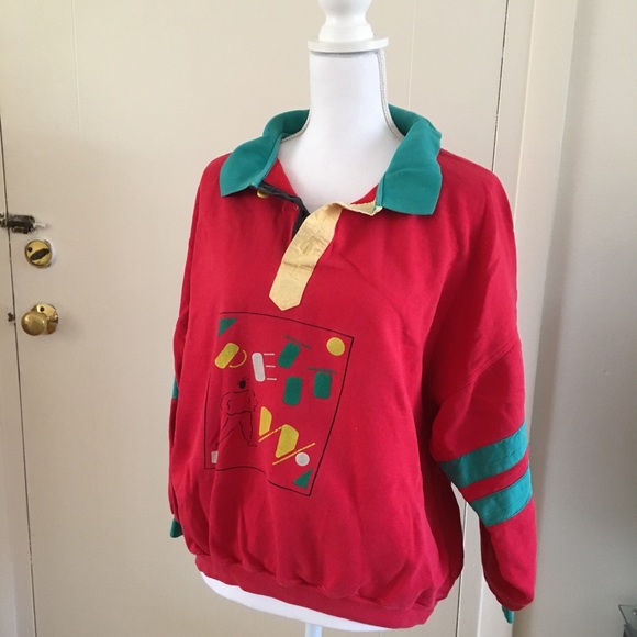 One of a kind sweater abstract vintage sweater! My best guess is that the shapes spell out “petit” but my friends love trying to guess what the hell this sweater actually has on it.
