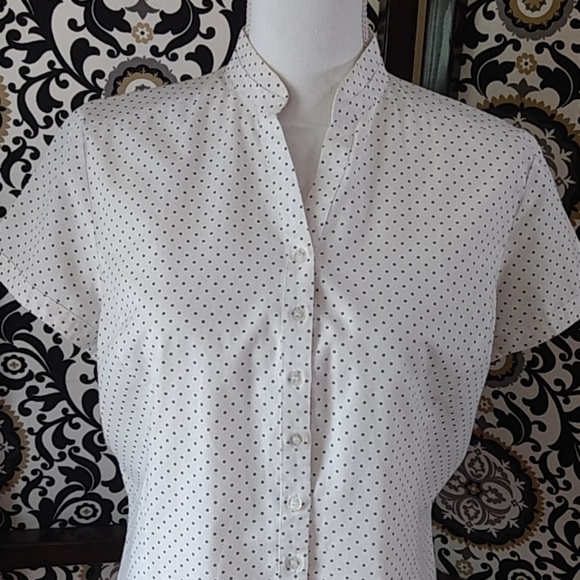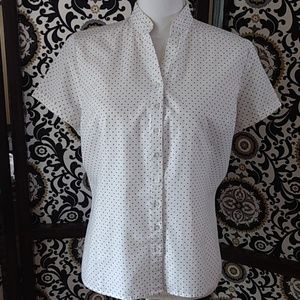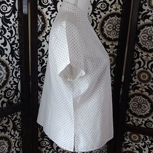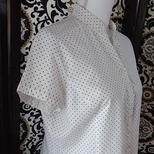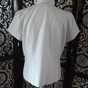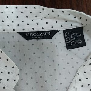 Size Large Autograph white/black polka dots button down top with vented sides. So cute, but too short for me. Perfect petite length π Excellent condition π