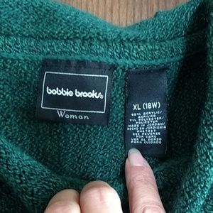 Size XL (not 18W like tag states) Bobbie Brooks emerald green sweater with cuffed long sleeves and waist and rolled neckline. Very comfortable and soft! Minimal wear and in great condition π