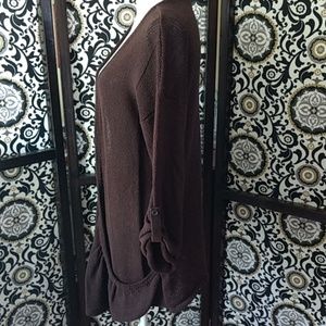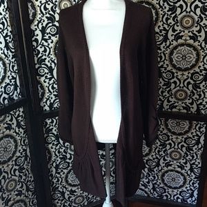 Size XL chocolate brown a.n.a open sweater with 3/4 button sleeves and scoop front pockets. So soft! Perfect for cool officeπNo snags or holes. Great condition π