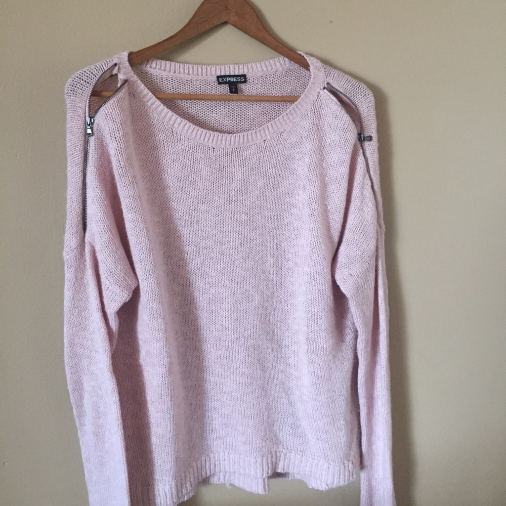 Cozy oversized cotton knit sweater, in lovely light pink.
