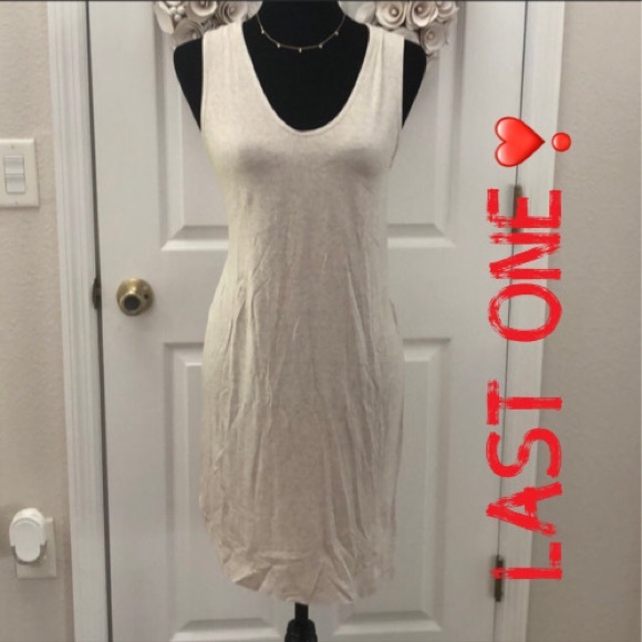 PRICE FIRM This versatile oatmeal dress goes from office to weekend wear with little effort. Front has a rounded v neckline, asymmetrical hemline and material is as super soft. Approx M:B:18.5" W:19" L:33-36.5" Closet closing for good June 30th❣️ April my closet will be on hold. May & June will be my final months of sales. I have already reduced prices 45-50% on boutique items. Final price or Price firm are firm. All items left July 1st will be donated❣️