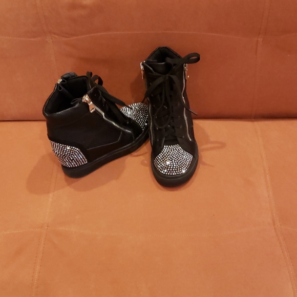 Black and rhinestones cute boots EUC and well loved but plenty of life left