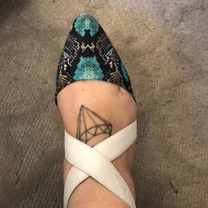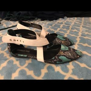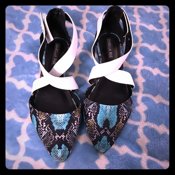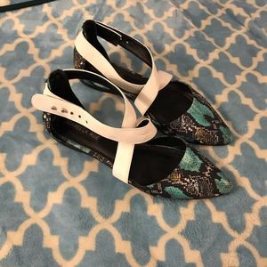 Sexy pointed flats. Snake print pics are true to color. White straps. Worn twice and in great used condition
