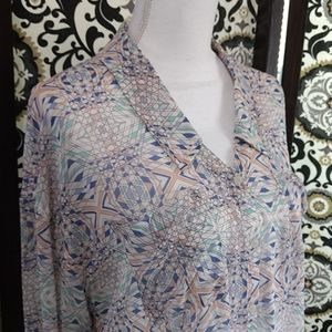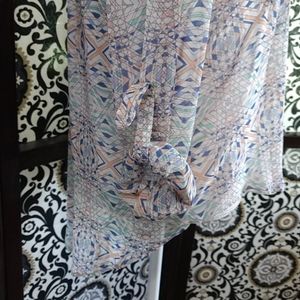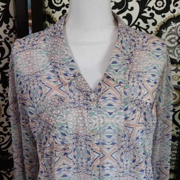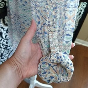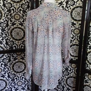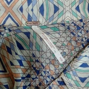 Size Small (fits Medium easy!) Oversized Free People sheer long or rolled up sleeve, button down, hi-lo top. Two front droopy pockets. Blue, peach, mint and lavender. Excellent condition and so cute π