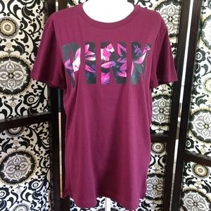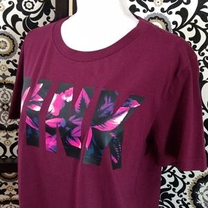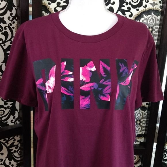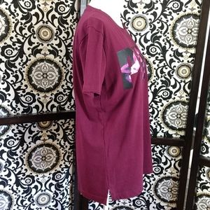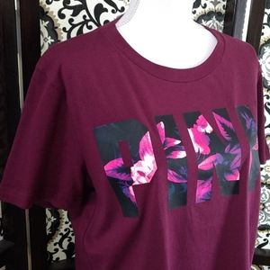 NWOT Size Small maroon (pics 1&2 best) PINK t-shirt with pink, purple, black floral decal on front. Oversized and fits Medium perfectly! Back is slightly longer than front. Excellent/New condition π