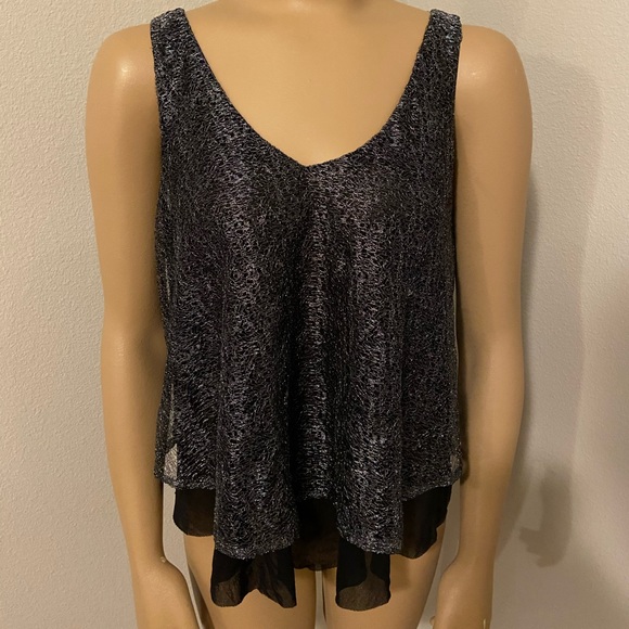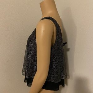 NWT Black & silver layered flowy tank top. Very cute & elegant. New, never worn. No flaws. Ask ❓, more 📸 upon request .. ❌trades ❌holds, ✅ offers using button ✅discounted bundles✌🏾&❤️