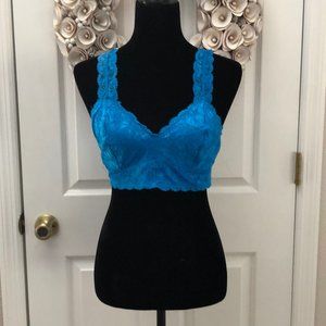 PRICE FIRM L&B flower cover lace detail bralette crop top with strappy back and a vneck in turquoise. Quality stretch lace with lining on inside. Lace has stretch to it. Measurements are approx. and laying flat bust L/XL 16". Closet closing for good June 30th❣️ April my closet will be on hold. May & June will be my final months of sales. I have already reduced prices 45-50% on boutique items. Final price or Price firm are firm. All items left July 1st will be donated❣️
