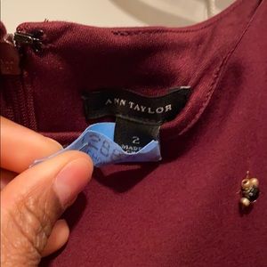 Ann Taylor burgundy shift dress with gold and black embellishments and slit detail in back. Like new. No damage. Freshly dry cleaned.