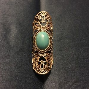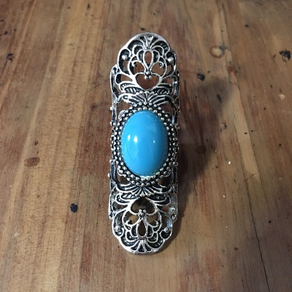 Full finger ring▪️Turquoise stone at center▪️Approximately size 5 or 6▪️Add to bundle and I’ll send the offer!