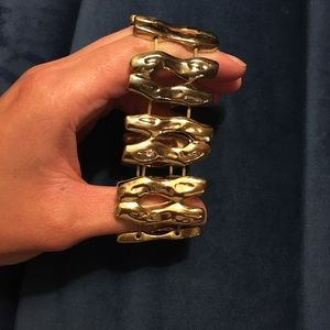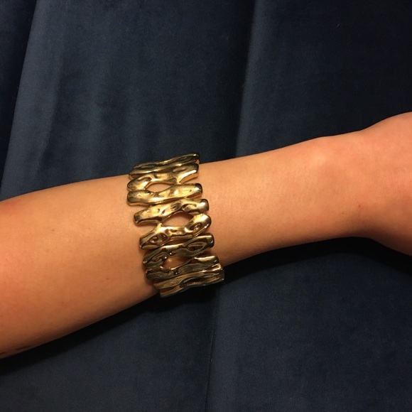 Elastic band▪️Heavy duty metal▪️I have a small wrist so this bracelet fits pretty small