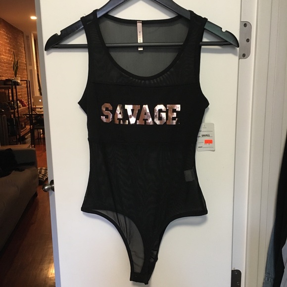 All sheer except for across the chest▪️Savage is written in rose gold▪️Never worn▪️Snaps at bottom