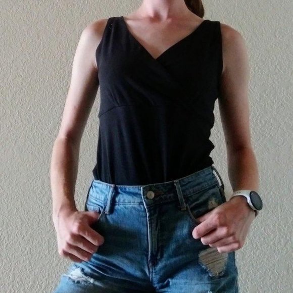 Nice comfortable top with a cross over detail. Pairs well with anything. Pretty good condition, just normal signs of wear.