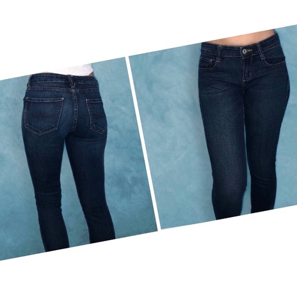First photo Example only (picture more curves). Rest of pics are actual jeans Sz jrs 15 fit on woman’s Sz 14 I’m 5’6 fit fine