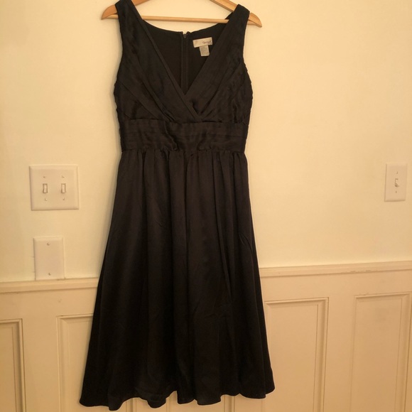 Beautiful and timeless! V-neck silk midi-length dress in size 4. Fits true to size. I think this is from the early 90s, but not positive. It’s in excellent used condition! Fully lined and super silky soft.