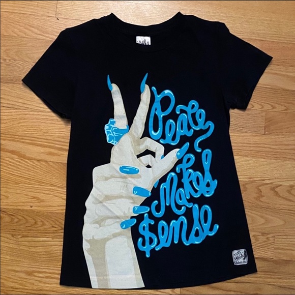 Junior's Large “peace makes $ense” tee. Lightly worn. Item comes from a smoke free and pet friendly home. Thanks for looking!