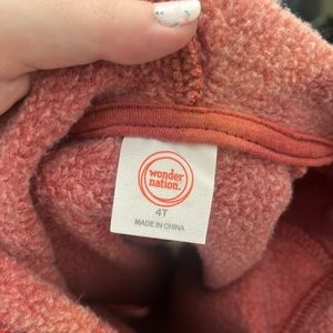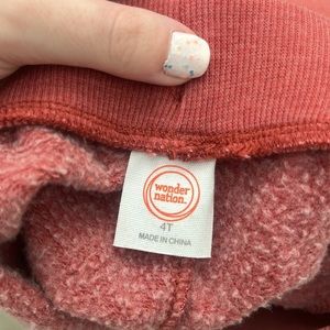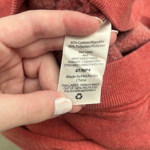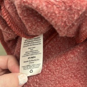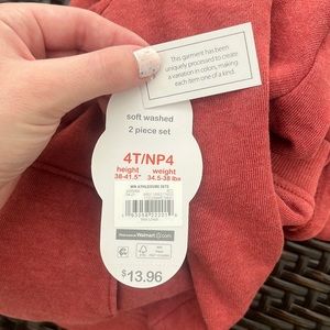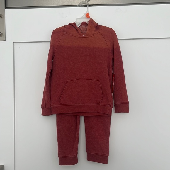 A one of a kind athleisure set, size 4t, brand new with tags! A lovely red and orange ombre color combo and ultra soft fabric, 60% Cotton, 40% Polyester for both hoodie and pants. Hoodie has front pocket, and pants have pockets and drawstring adjustable waist. Can work for girls or boys. Comes from a pet friendly home but will be lint rolled thoroughly before shipping. Please reach out with any questions! ❤️