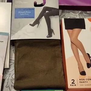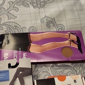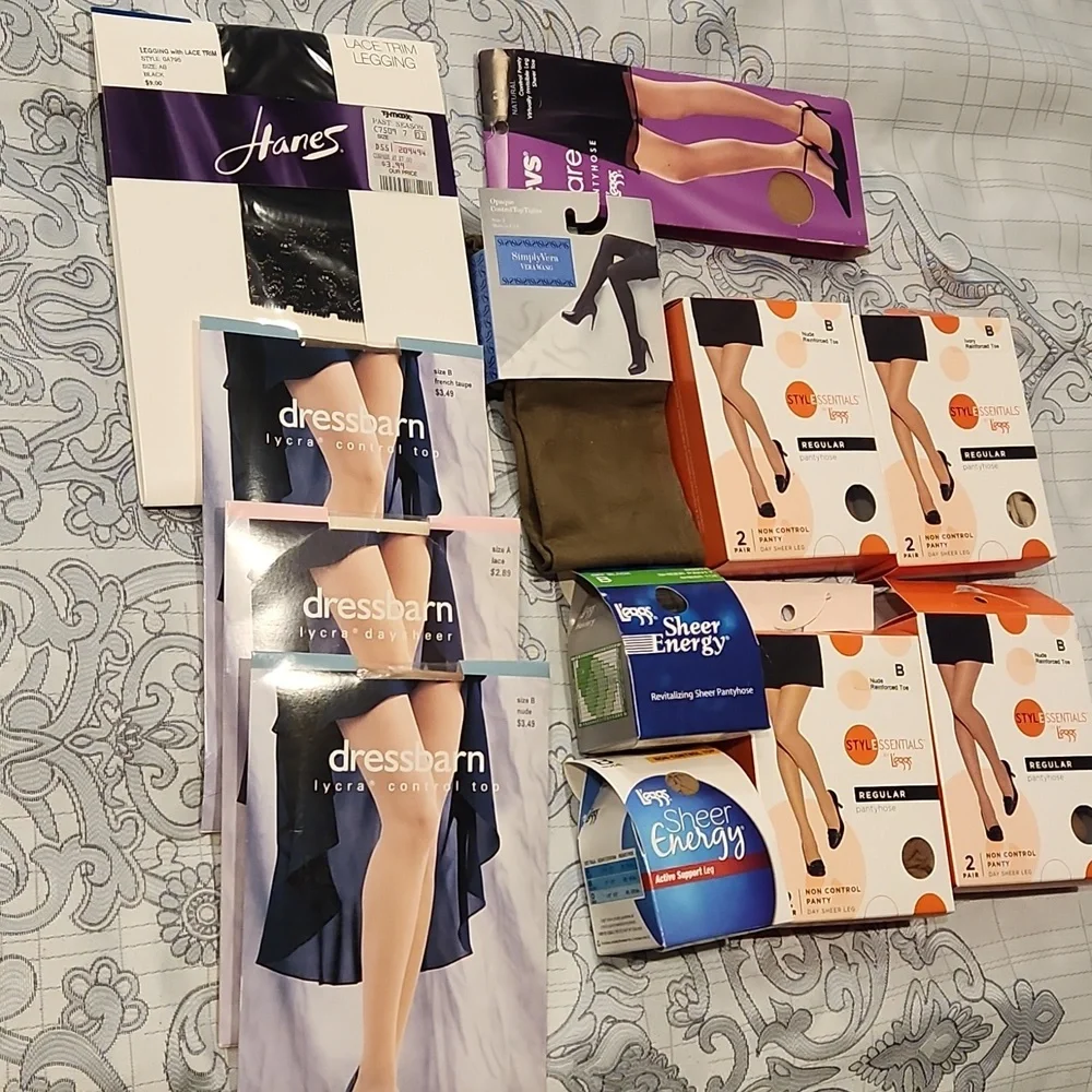 15 pantyhose and one lace trim leggings sizes A & B Black, beige, nude, gray and one olive green