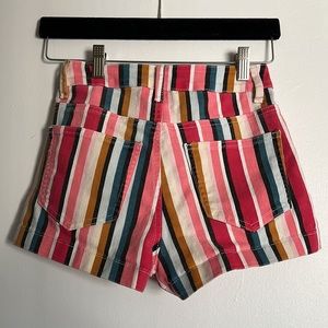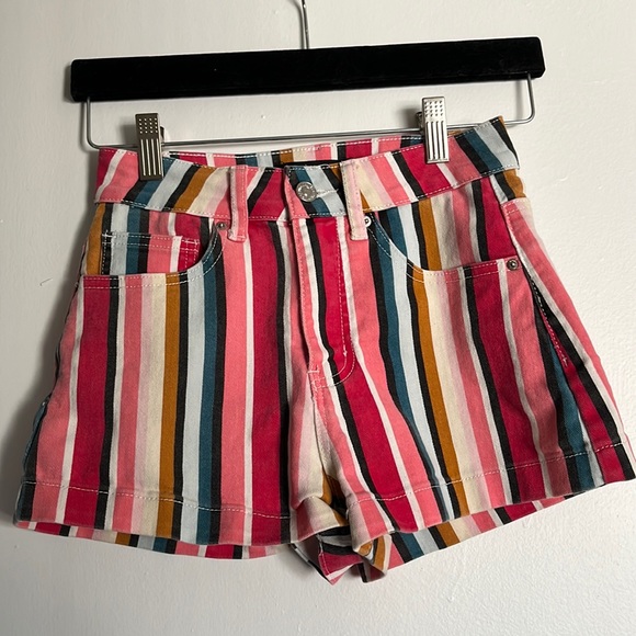 The cutest pair of pink striped shorts with accent colors in white, orange, blue and black. Size XS from Forever 21. In EUC only worn a handful of times. 70% Cotton, 27% Polyester, 3% Spandex. Comes from a pet friendly home but will be washed, dried, and lint rolled right before shipping π
