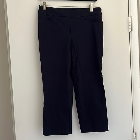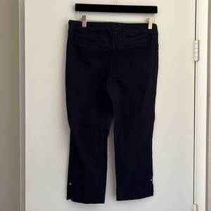 A simple pair of business Capris, size M from Hilary Radley. In like new condition. 76% Rayon, 21% Nylon, 3% Spandex. Adorable button detail towards the bottom of the pant leg. Comes from a pet friendly home but will be washed, dried, and lint rolled right before shipping π