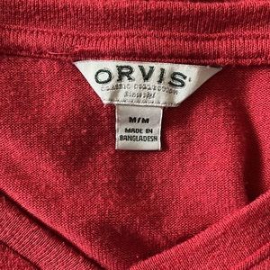 Red Orvis tee shirt. In excellent condition. Size M, 51% Polyester, 48% Rayon, 3% Spandex. Comes from a pet friendly home but will be washed, dried, and lint rolled right before shipping π