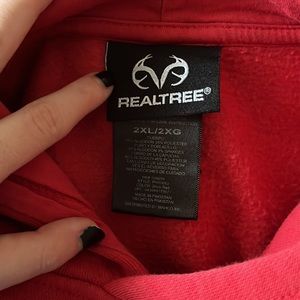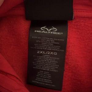 Red RealTree hoodie in EUC. Sze 2XL, more like a M/L. 65% Cotton, 35% Polyester. Comes from a pet friendly home but will be washed, dried, and lint rolled right before shipping π