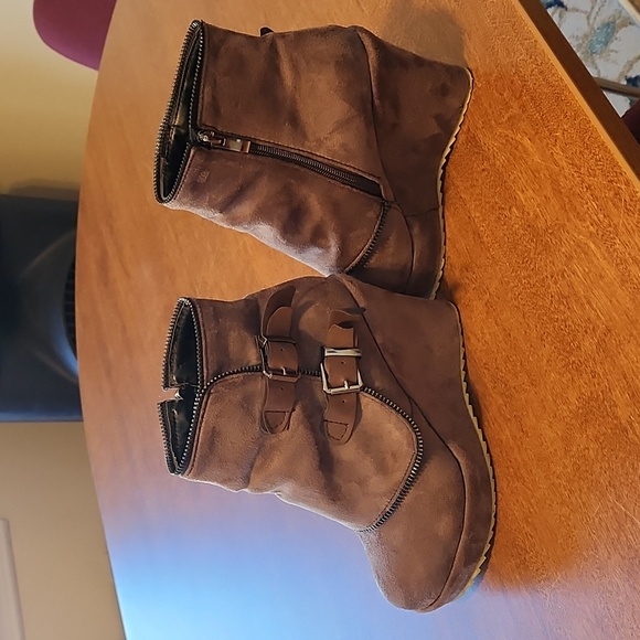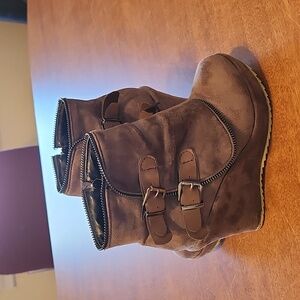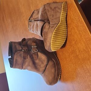Brown Suede 4" heels platform boots size 7