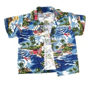 This Hawaiian shirt was Made in Hawaii. Like new. In excellent condition. Only been worn once. Toddler boy's size 2T. From a smoke free, pet free home.