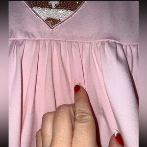 Worn once. I did notice that there is lipstick on the sleeve of the dress & a tiny mark on the front of the dress. Neither are really noticeable & both spots are untreated! Just wanted to mention. See pics. Smoke free/pet friendly home!