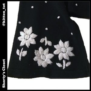 DONATING 10/31 - Like new! Adorable dot and flower-embroidered lightweight sweater with bell sleeves and V-neck. Dry clean. Labeled as a petite small but it's a bit big for a petite. Measurements provided on request.