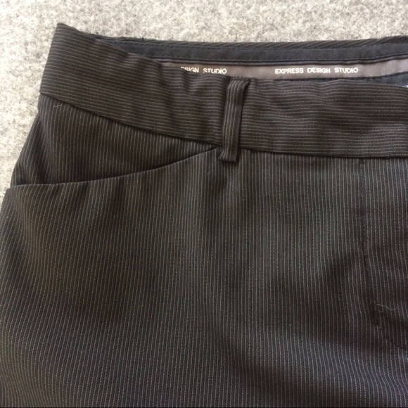 !!LAST CHANCE!! Dark charcoal gray pinstriped trousers from Express. Editor style. Lightweight fabric. Size 6R; inseam 31". Great condition!