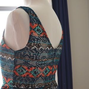 This dress has a pretty lace texture with a built in, cream-colored slip. Perfect colors for the fall season. I love pairing this dress with knee-high socks, riding boots, and an oversized cardigan.