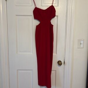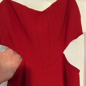 Cute red dress worn once and looking for a good home. Size extra small from hello Molly! It was dry, cleaned as the dry cleaning tag is pictured. Small slit in the back and zipper. Comment any questions, add to a bundle to save, or send an offer!