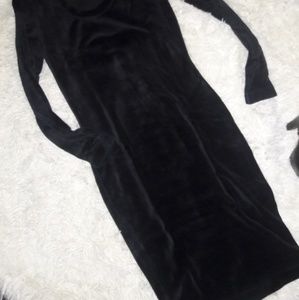 Made in Italy, black, long sleeve, velvet/velour, scoop neck, fitted, mid-long dress, S!!! Measurements or additional pics upon request!