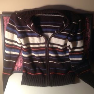 Shoot me an offer or get FREE with ANY other purchase. Gently worn size small Express Zip-Up Sweater that can also fit size M. Express Bleus brand. Awesome colors and very comfy.
