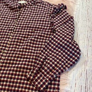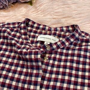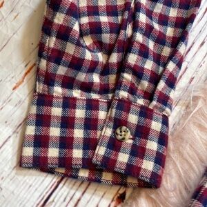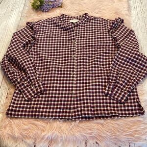DONATING 11/1 Something Navy Plaid Flannel Ruffle Shoulder Button Up Top sz M