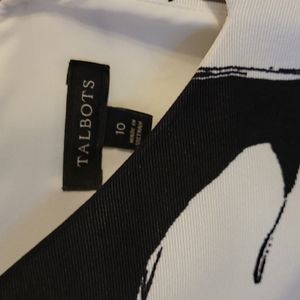 EUC Size 10 Talbots black and white floral sleeveless Blouse with keyhole closure in back and small bow detail on left shoulder. Blouse is lined!